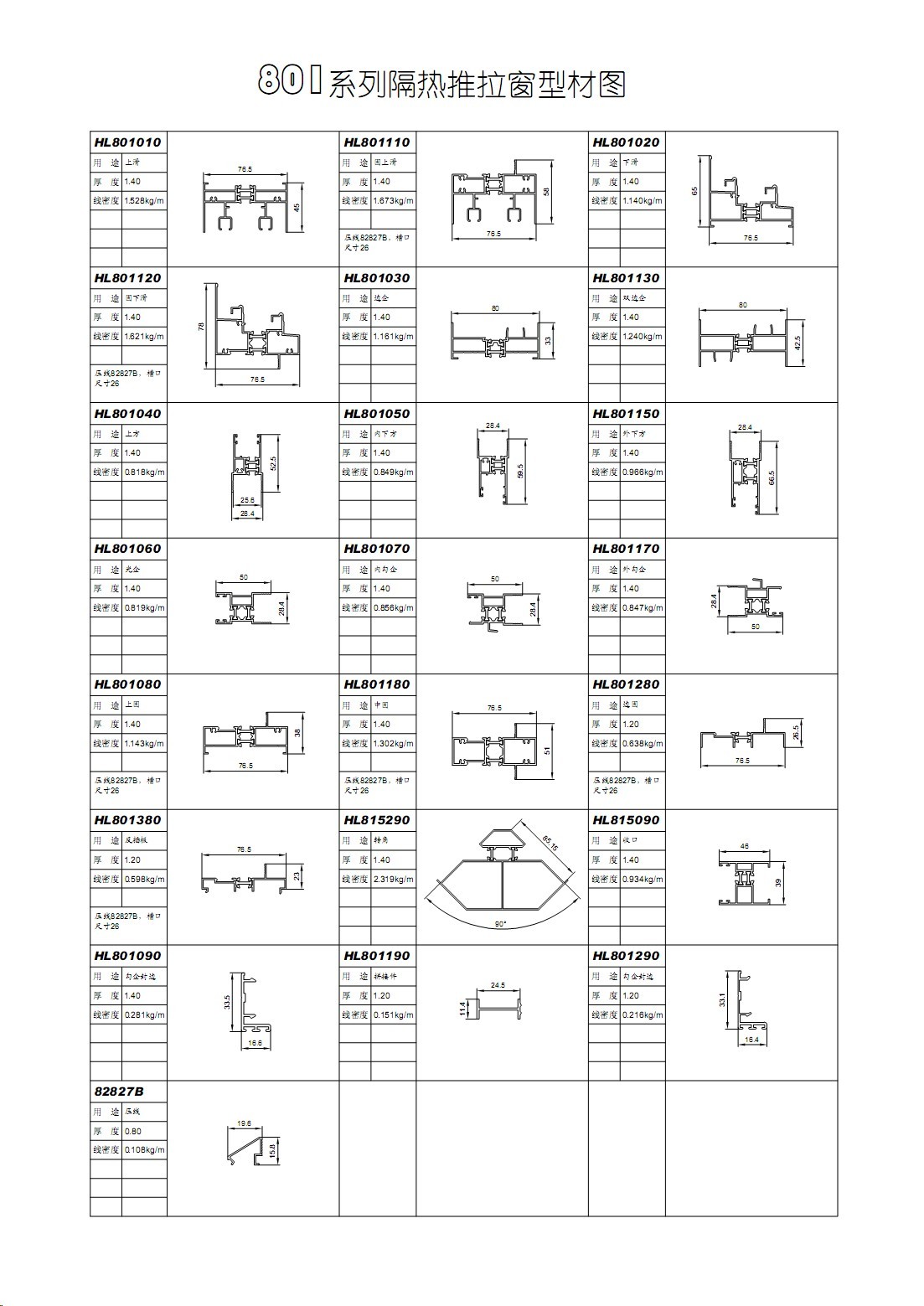 801系列隔热穿条推拉窗型材